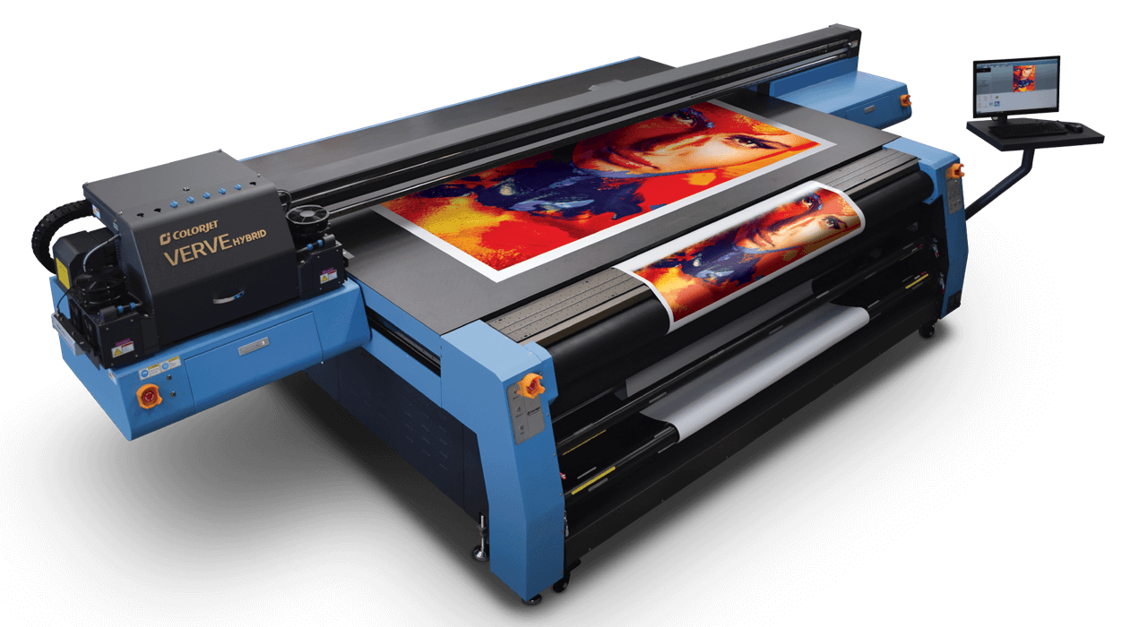 VERVE HYBRID is a 3.2 M UV Flatbed Roll to Roll Hybrid printer that delivers fast and versatile UV performance. This UV printer enables super speed production with speed up to 63 square meters per hour. This UV hybrid printer from the house of ColorJet is engineered for high-endurance work and low running costs to deliver high-quality print for a long period of time. This versatile printer enlarges capabilities and print business possibilities towards high growth and a higher return on investment (ROI). The UV hybrid roll to roll printer can print on substrates like ACP, foam, board, flute board, glass, ceramic tiles, wood, and on a wide range of vinyl and flexible media. This UV digital printing machine has a large flatbed of 3.2 m x 2.0 m and a 3.2 m wide roll that makes it highly productive and versatile. This digital UV hybrid printer offers a variety of applications to help your print business grow.