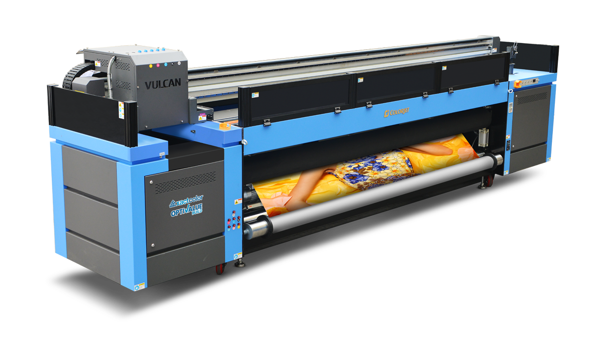 It’s time to print smarter and change the game of UV printing with ColorJet’s VULCAN, a high speed 3.2 m roll-to-roll UV LED Inkjet printer. Experience unprecedented print speed, high-quality, and lucrative total cost of ownership with our UV roll to roll printer VULCAN. It offers a variety of applications to help your print business grow with its versatile media handling capabilities that support a variety of flexible media, like backlit fabric, ceiling film, vinyl, advertising banner, PET, wallpaper, etc. It is an industrial UV printing machine that has a robust beam with high precision mechanical accuracy. This ensures high quality back to back printing with accurate dot placement solution and low ink consumption making VULCAN, a perfect solution for indoor and outdoor applications. Embedded with the UV LED curing process, it has several benefits that make printing more economical and ecological. Its smartly integrated design is convenient for trouble-free operation.
